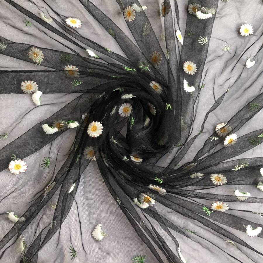 2020年春夏新款网布绣花布料 小菊花绣花布 连衣裙立体绣花面料